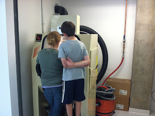 My dear friend, Lu Kania, gave us the short introduction to sandblasting.  It involves these machines: